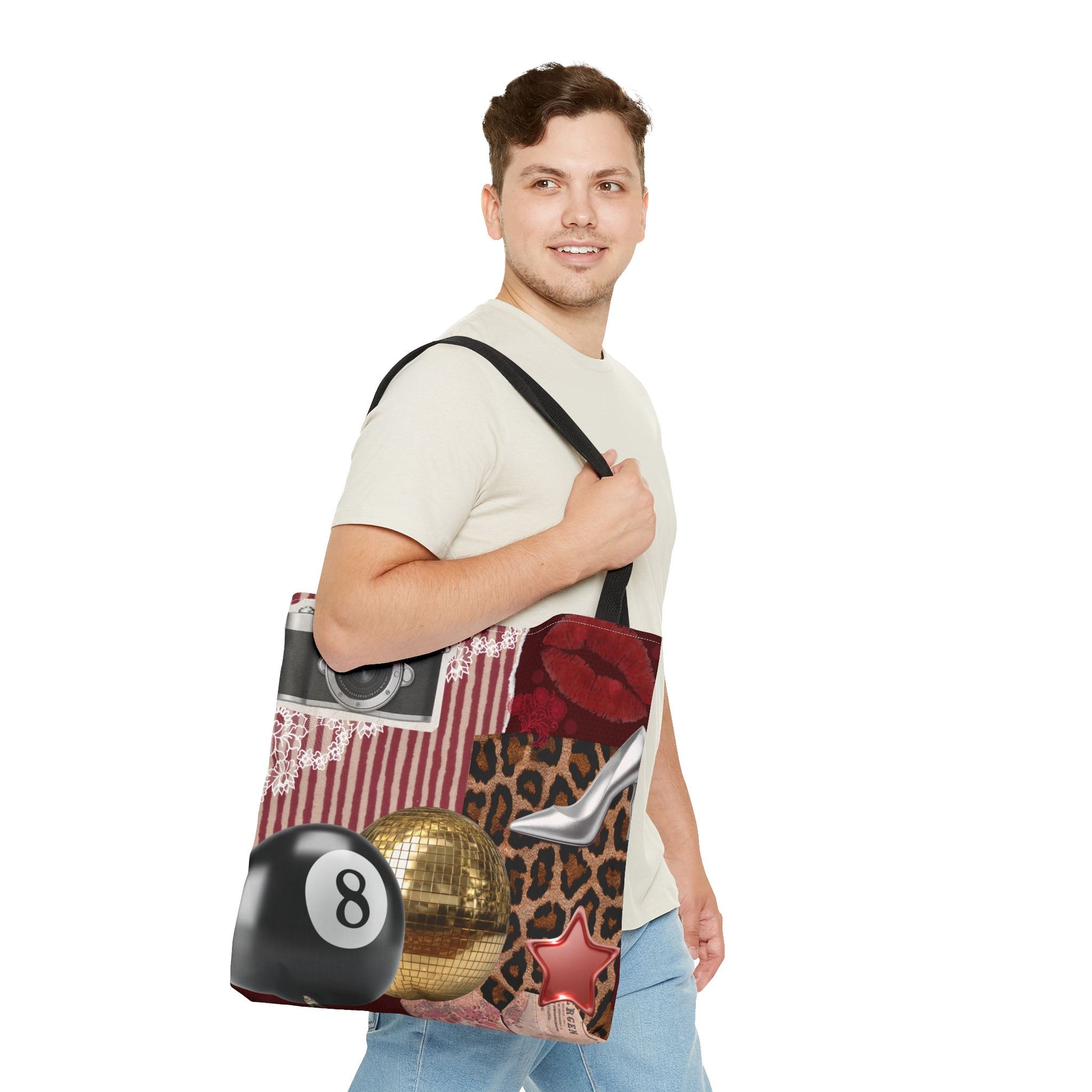 Available in 3 sizes to add both functionality and style, these custom-printed tote bags come with multiple handle colors to match your designs. Made with spun polyester, these bags feature double-stitched seams, cotton webbing straps, and nonwoven laminate lining for high-end durability. Your all-over print is created with dye sublimation for high-end visuals.